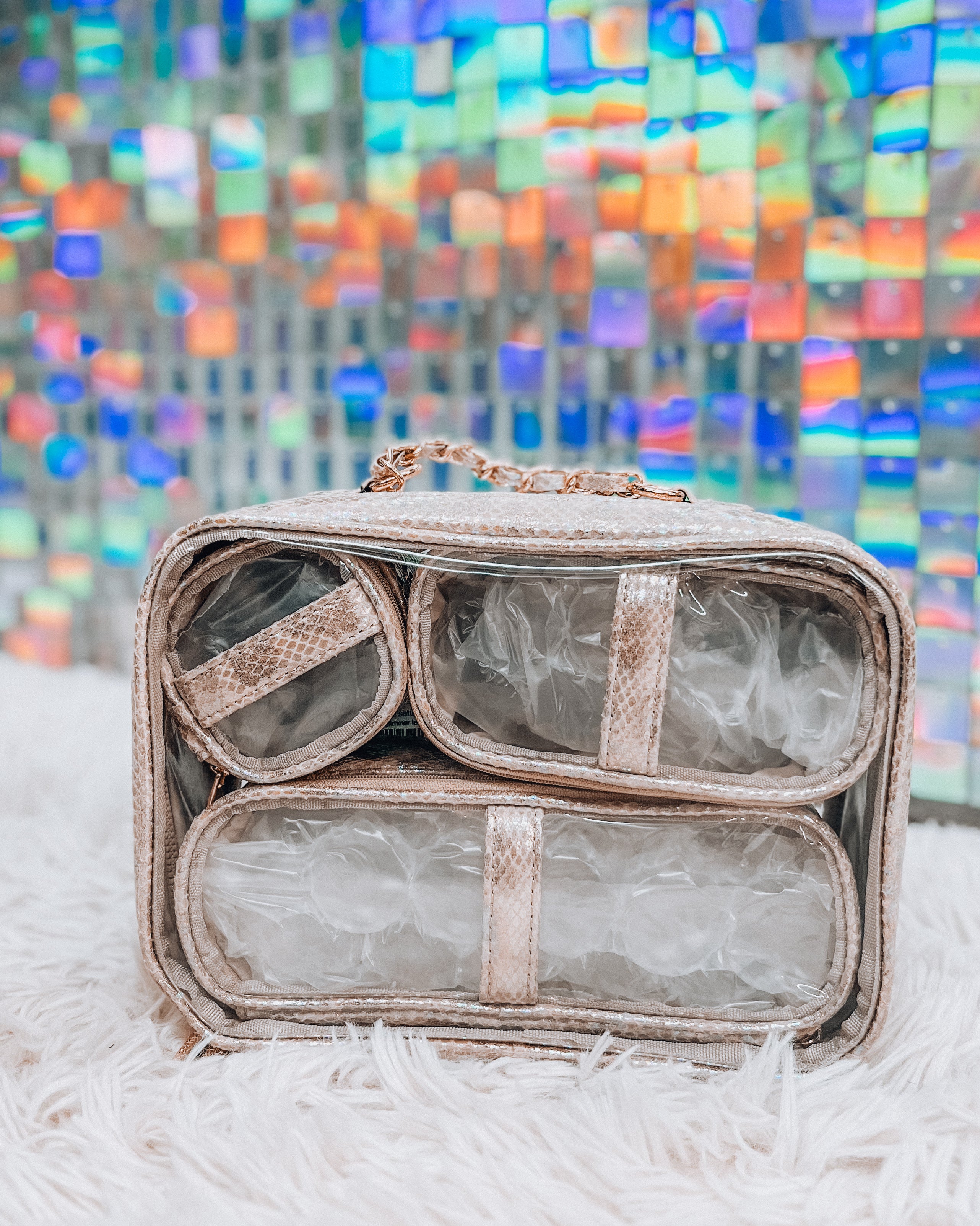 Travel smart and in style with the PurseN Trio Jet Setter, the ultimate organizer for the fashion-forward traveler. This spacious cosmetic and accessory case features three clear, removable compartments that keep your essentials neat, visible, and easy to grab on the go. The chic exterior comes in two stunning finishes: *Glimmer Leopard* with a touch of shimmer and bold personality, and *Pearl Quilted Long* with a timeless quilted texture and pearl-like sheen. Lightweight yet durable, it’s designed to slip easily into your carry-on, tote, or weekender, making it perfect for everything from daily touch-ups to far-flung getaways. Whether you’re jetting across the globe or heading to a girls’ weekend, this organizer ensures your beauty routine travels as luxuriously as you do.