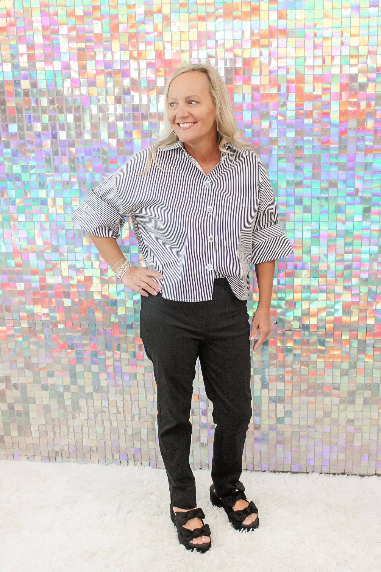 Elevate your everyday look with the sleek sophistication of the Renaur Black Woven Pants. Designed with a flattering straight-leg silhouette, these pants feature a smooth woven finish that drapes effortlessly for a polished yet comfortable fit. The mid-rise waist and tailored cut make them versatile enough for work, dinner, or casual outings, while the timeless black hue ensures endless styling possibilities. Pair with a structured blazer for office chic or a flowy blouse for a modern, relaxed vibe.