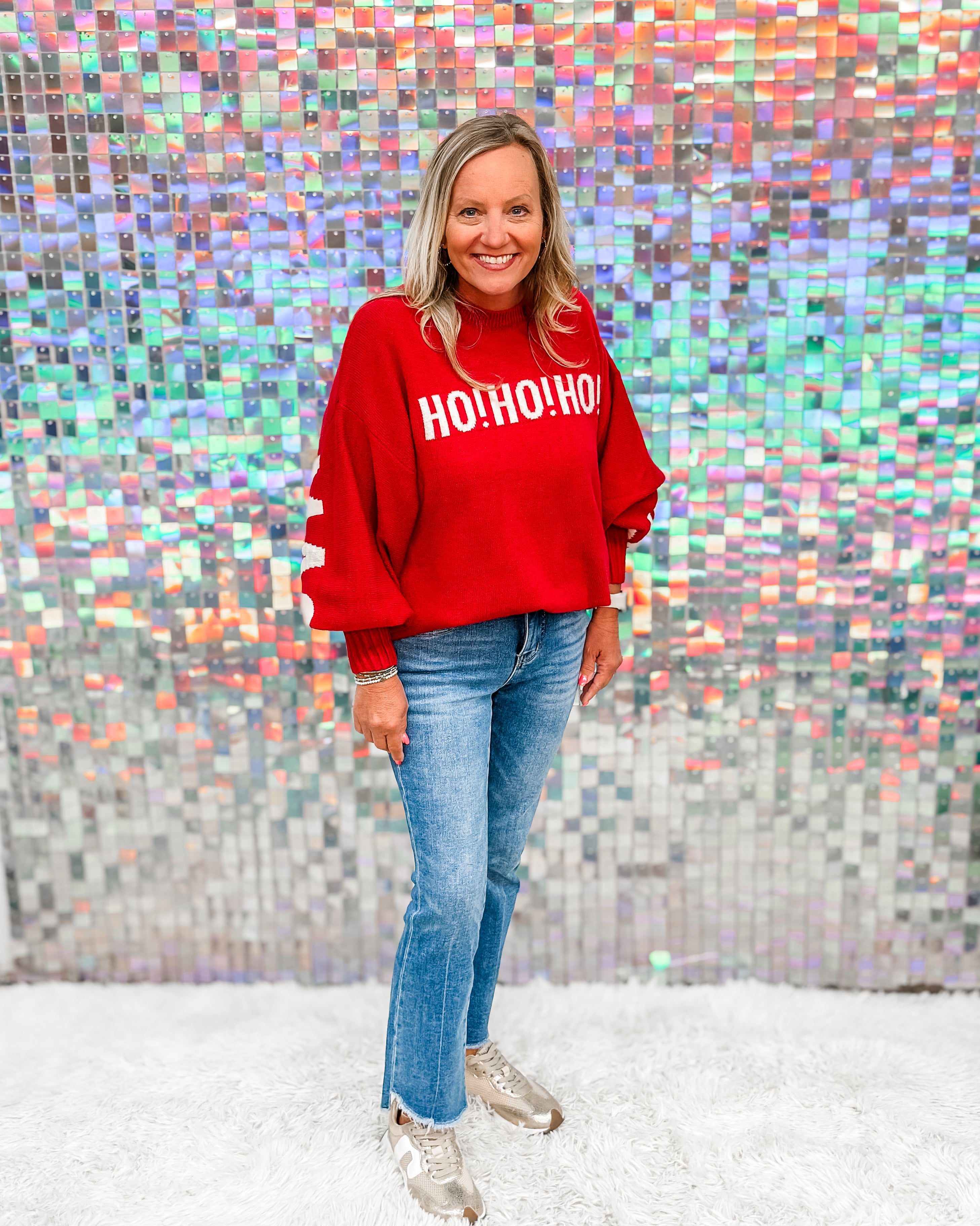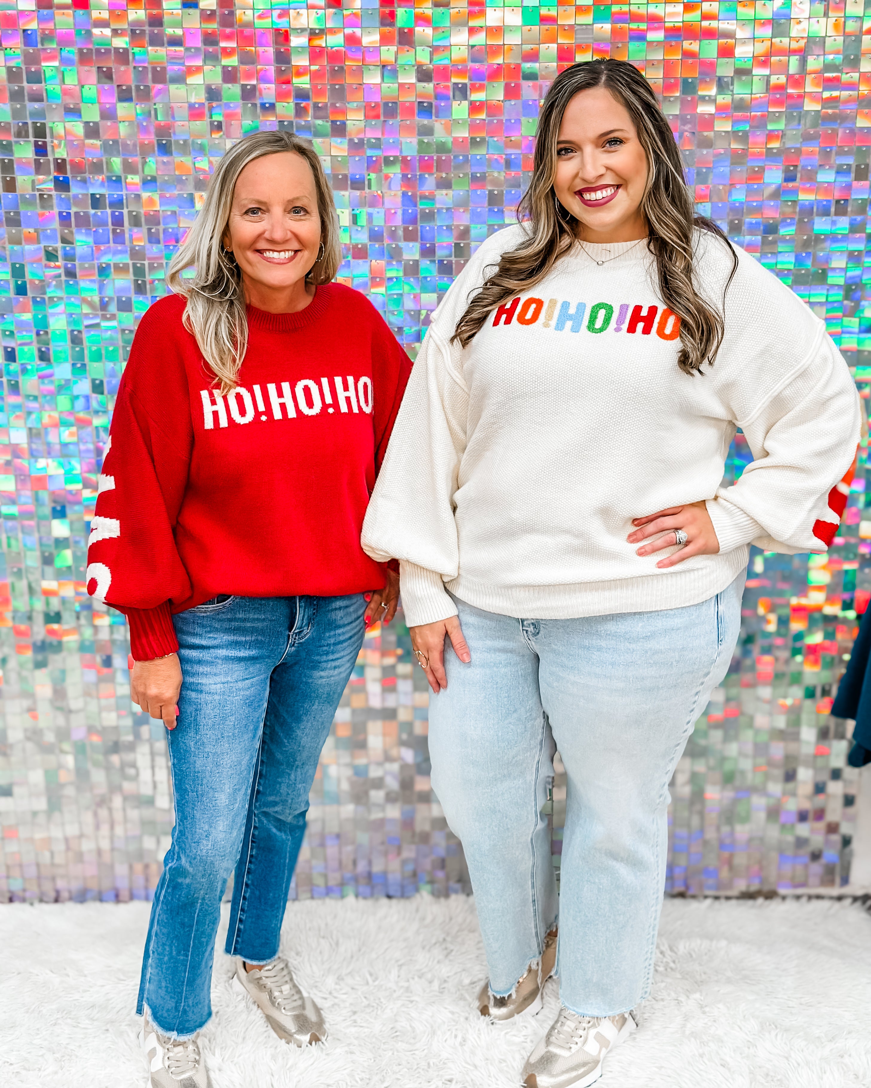 Get ready to sleigh, y’all! This oversized Christmas sweater is bringing major festive vibes with a bold “Ho Ho Ho” front and a surprise “Merry Christmas” shout-out on the back. Cozy, comfy, and made for cookie baking, caroling, or casual slayin’—it’s the ultimate holiday mood. Pair with leggings, sparkly joggers, or rock it solo as a dress if you're feelin’ extra merry!