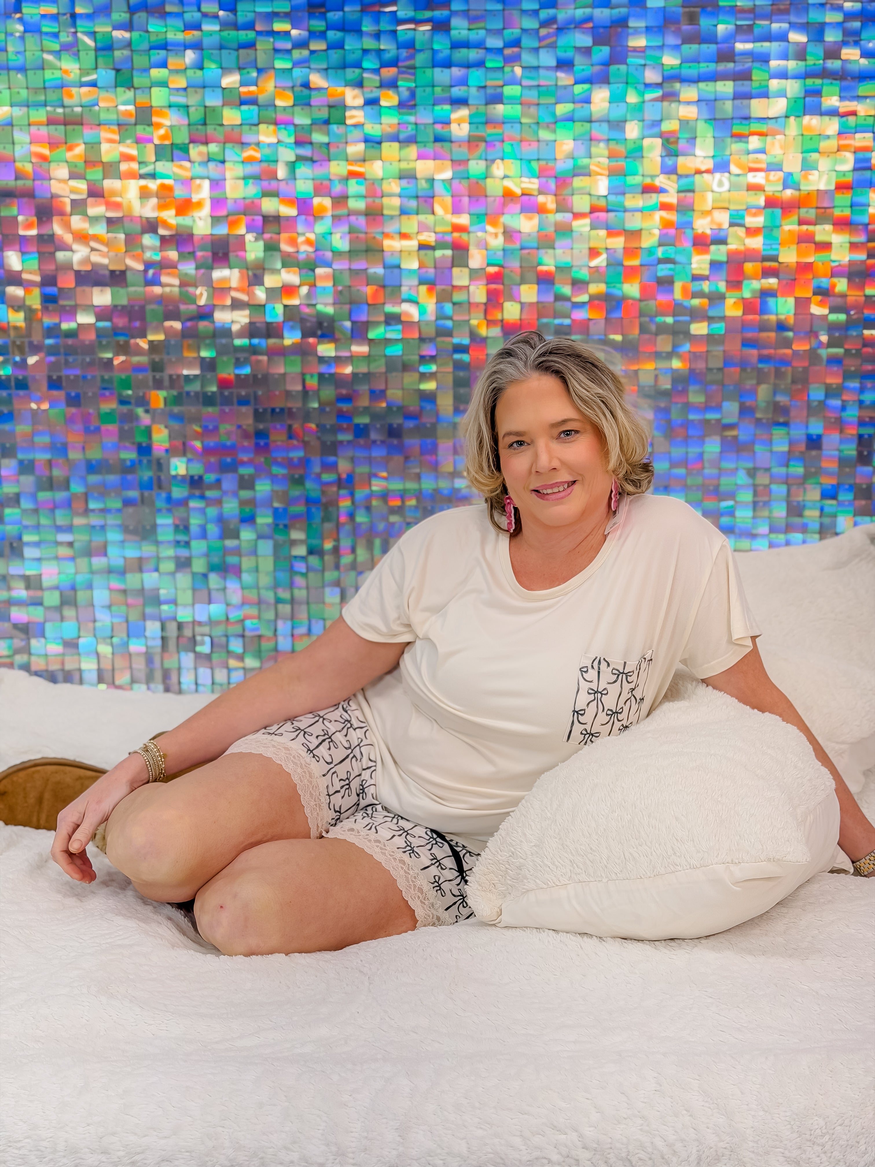 Sweet dreams start in this Simply Southern bow stripe t-shirt pajama set. Featuring a soft short-sleeve tee paired with coordinating shorts, this two-piece set is designed for all-night comfort and laid-back lounging. The playful bow stripe print adds the perfect touch of charm while the relaxed, lightweight fabric keeps things breathable and easy. Ideal for bedtime, slow mornings, or cozy days at home.