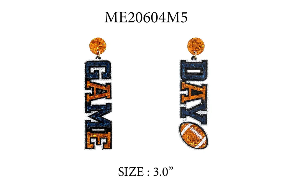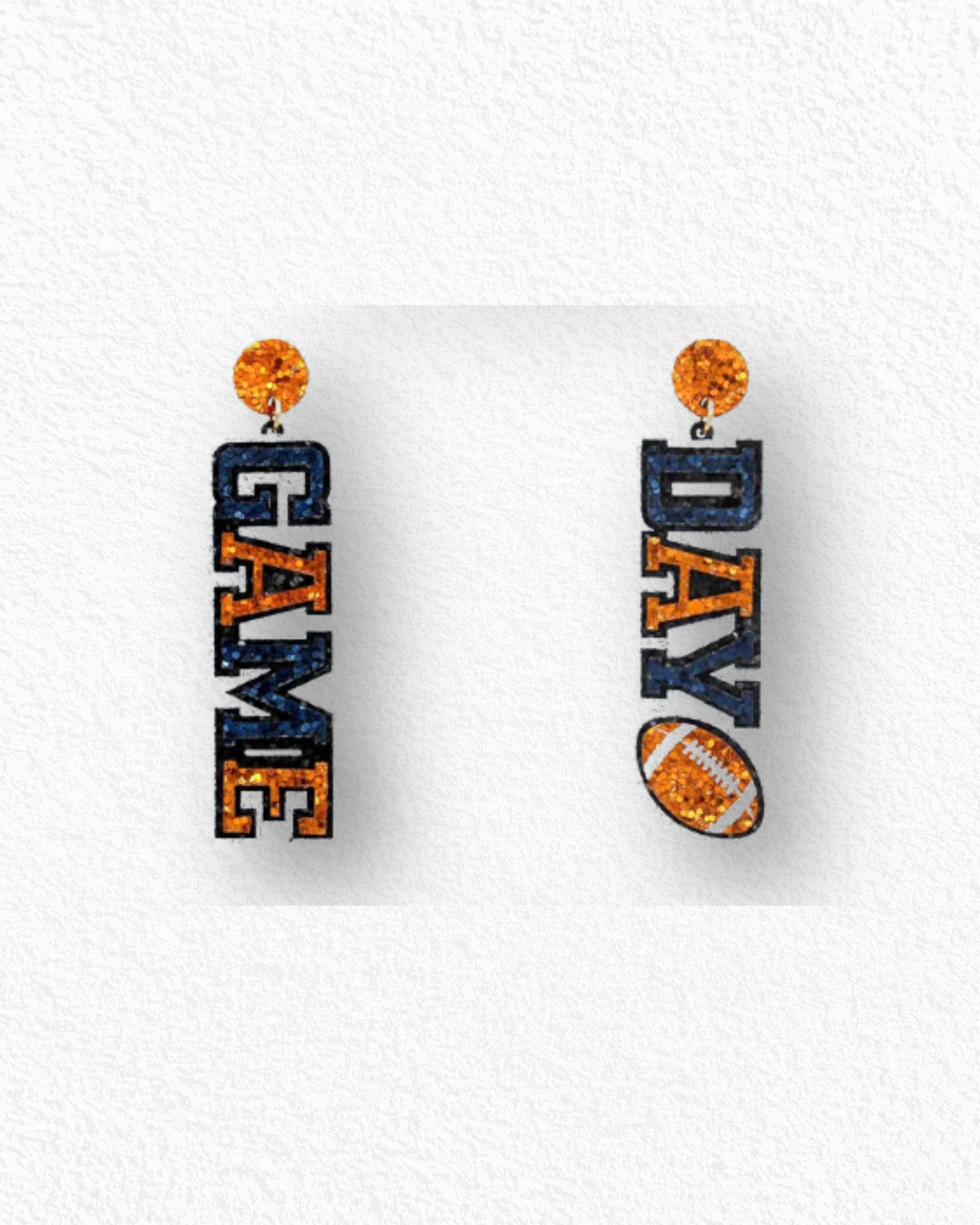 Navy and Orange "Gameday" Glitter Earrings – These 2" sparkly stunners bring the perfect pop of team spirit with bold navy and orange glitter and a playful “Gameday” design. Lightweight, fun, and tailgate-ready!