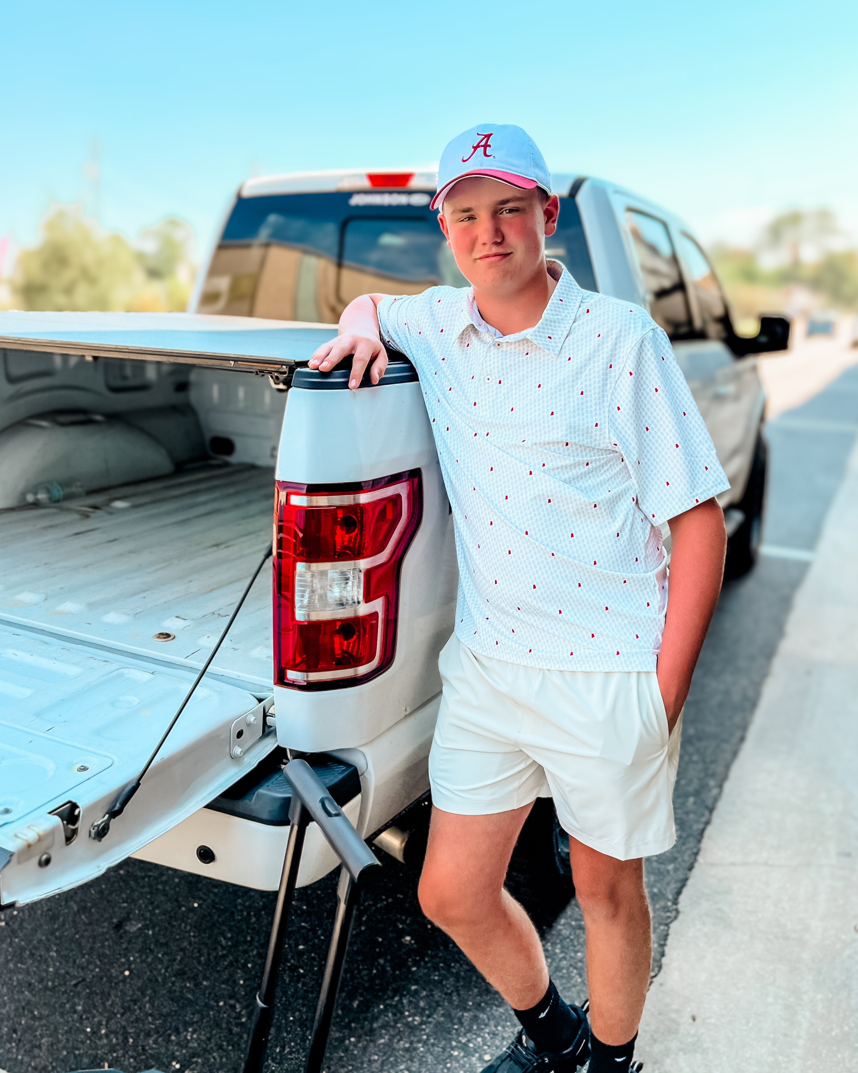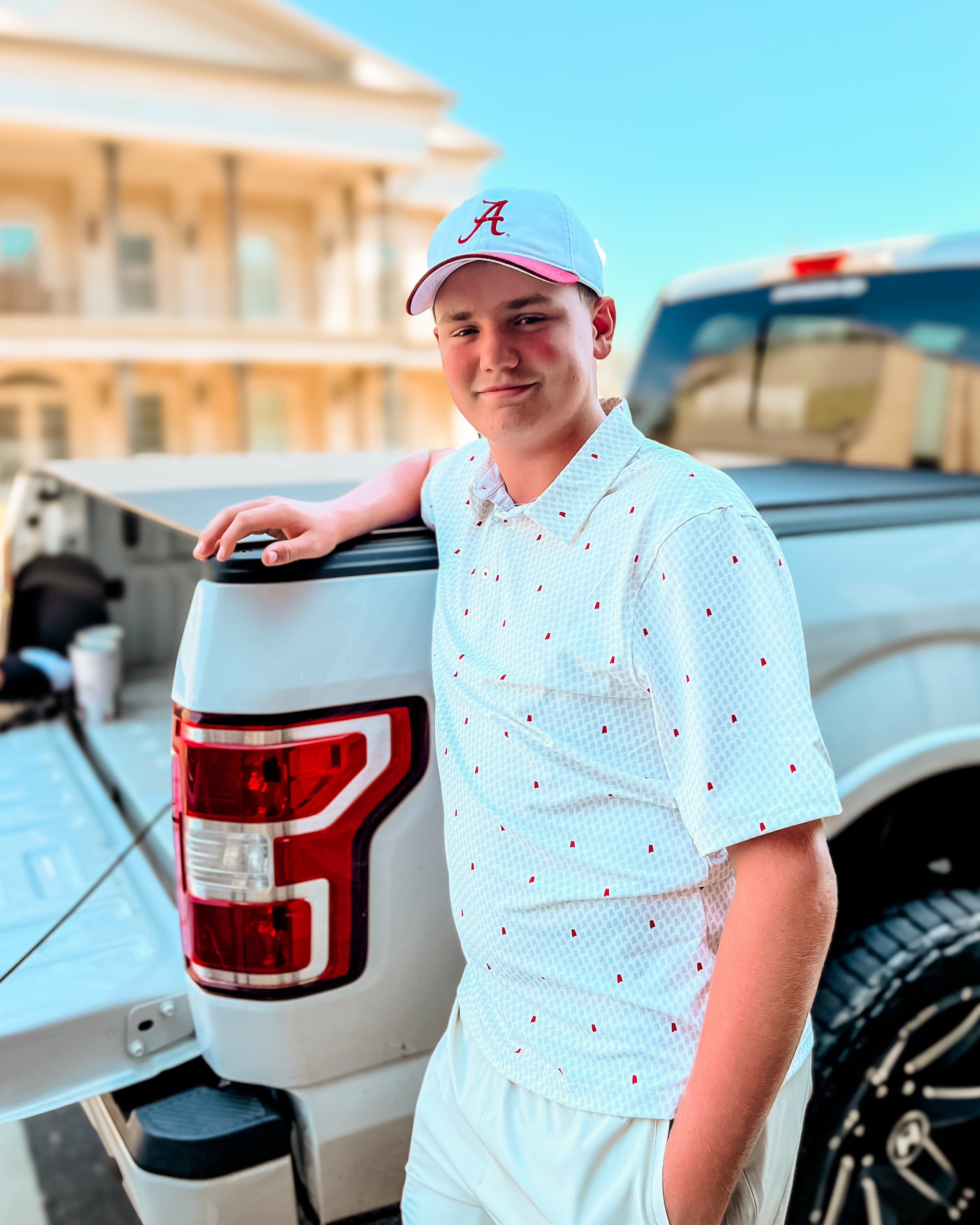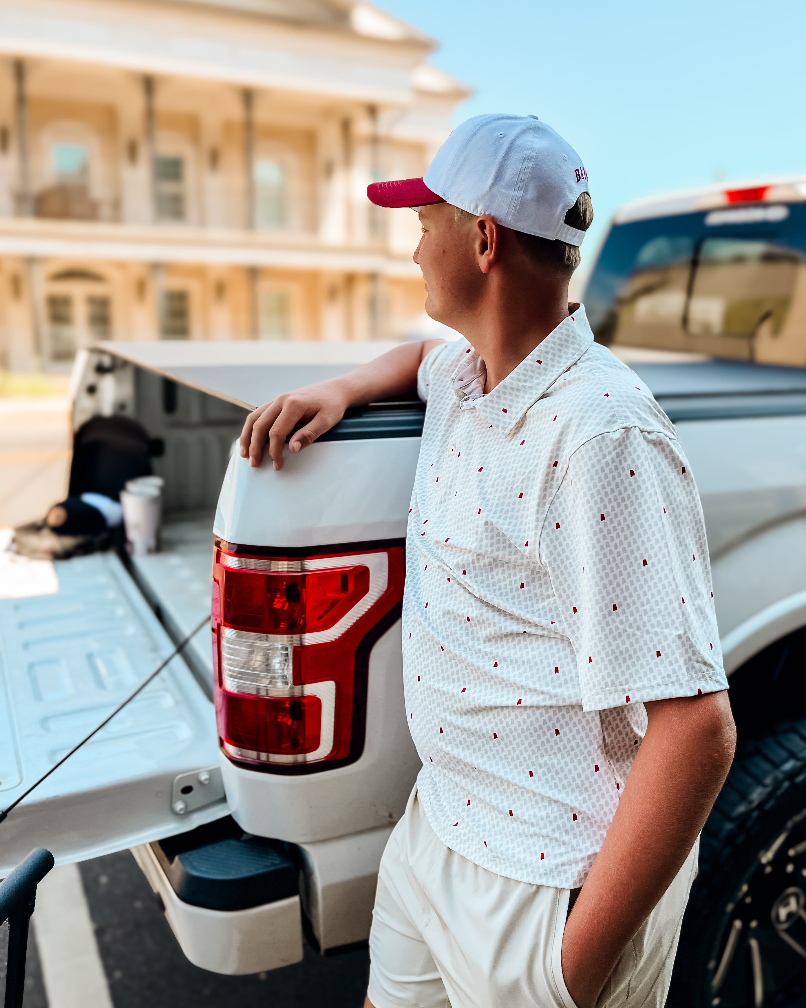 The Southern Shirt Company Sweet Home Polo in The Quad is a fresh take on a Southern classic. Made from a soft performance fabric blend, this polo is lightweight, breathable, and moisture-wicking—perfect for staying cool in the Alabama heat. The Quad colorway gives it that clean, versatile look, easy to dress up with chinos or keep casual with shorts. Designed with a classic three-button placket, ribbed collar, and just the right amount of stretch, it delivers all-day comfort with a polished Southern vibe.