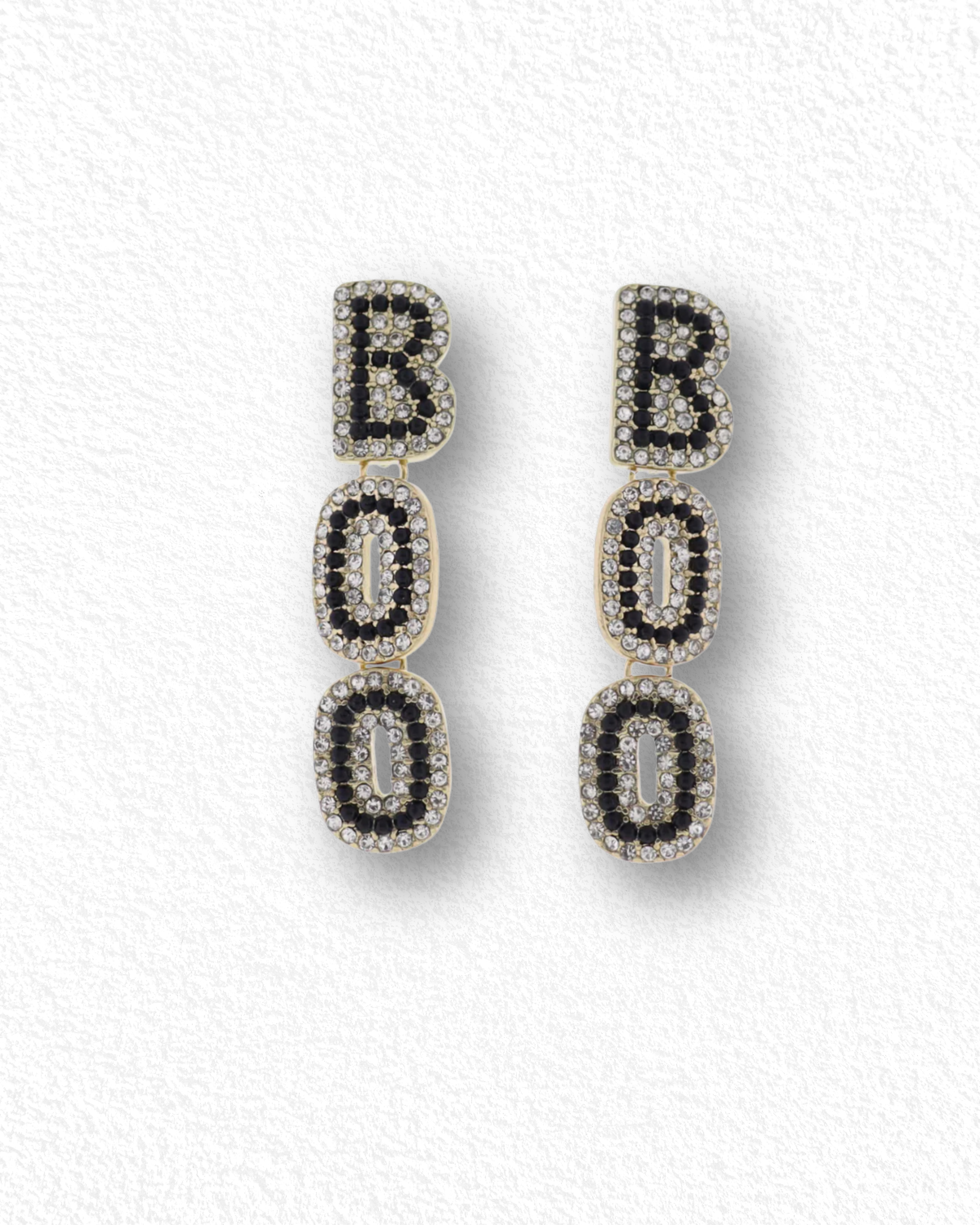 Say it with sparkle—BOO! These crystal-studded “Boo” earrings are the perfect playful pop for spooky season. Featuring shimmering rhinestones and bold lettering, they’re equal parts cute, sassy, and ghost-approved. Lightweight enough for all-day wear but loud enough to make a statement, these earrings are your go-to for Halloween parties, pumpkin patch selfies, and everything in between.👻✨
