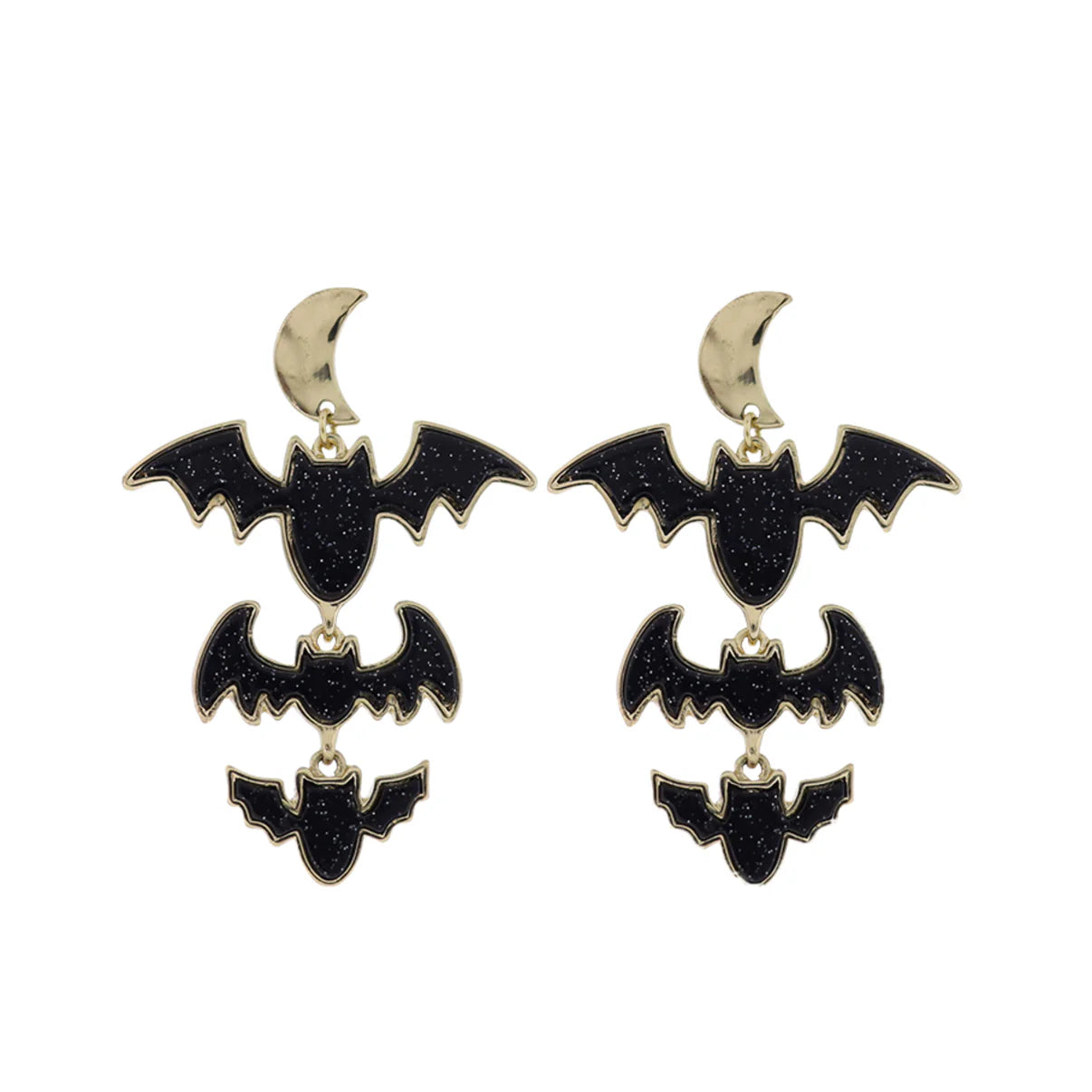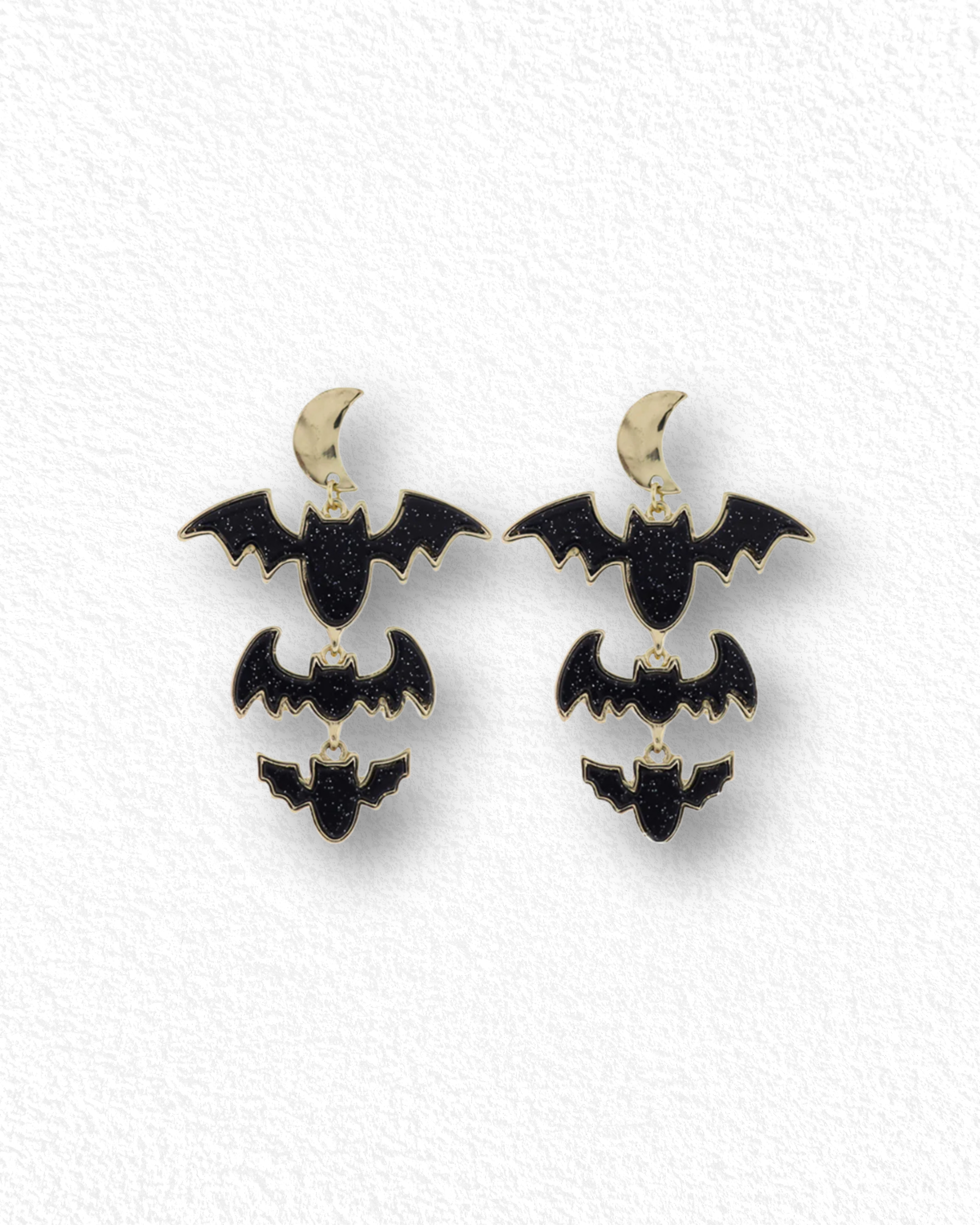 Channel your inner night queen with these Moon and Jet Descending Bats Earrings. A crescent moon sets the scene while sleek black bats cascade downward in dramatic fashion. Mysterious, moody, and totally mesmerizing, these earrings are perfect for spooky season or anytime you want to serve dark feminine energy. Lightweight with just the right amount of edge—because basic jewelry just isn't your vibe. 🌙🦇🖤