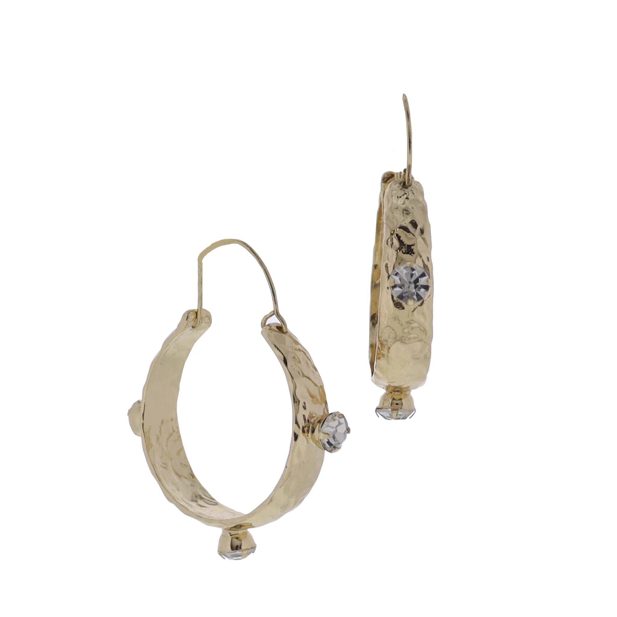 Hammered gold hoops with sparkling crystal studs—aka instant outfit upgrade! These beauties shine from every angle and pair perfectly with any glam fit.