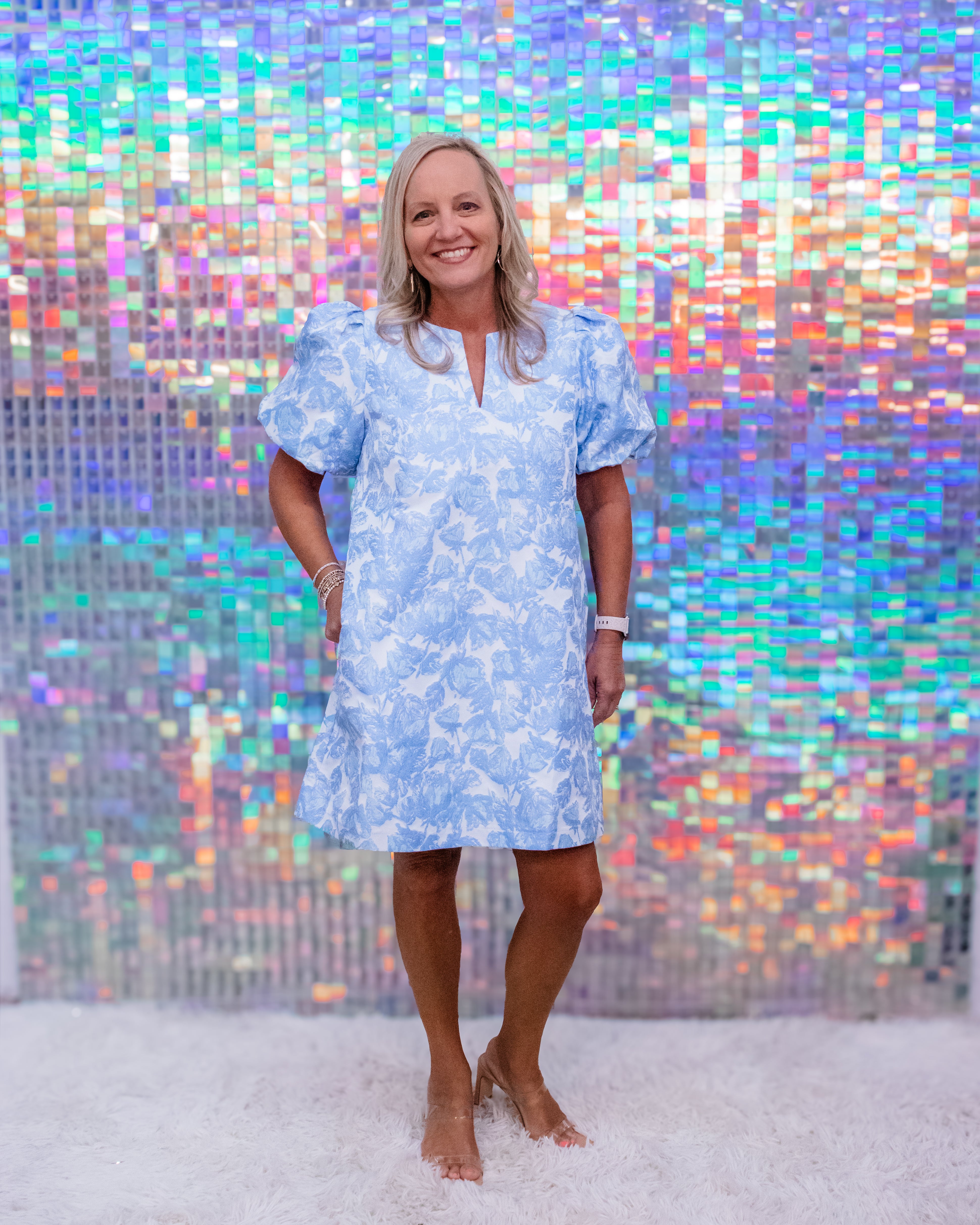 A stunning blue floral jacquard brocade dress designed with intricate texture and a touch of elegance. The puff sleeves add volume and a romantic silhouette, while the structured brocade fabric brings richness and sophistication. Perfect for weddings, parties, or special occasions, this dress blends timeless charm with a fashion-forward edge, making it a standout piece for any event.