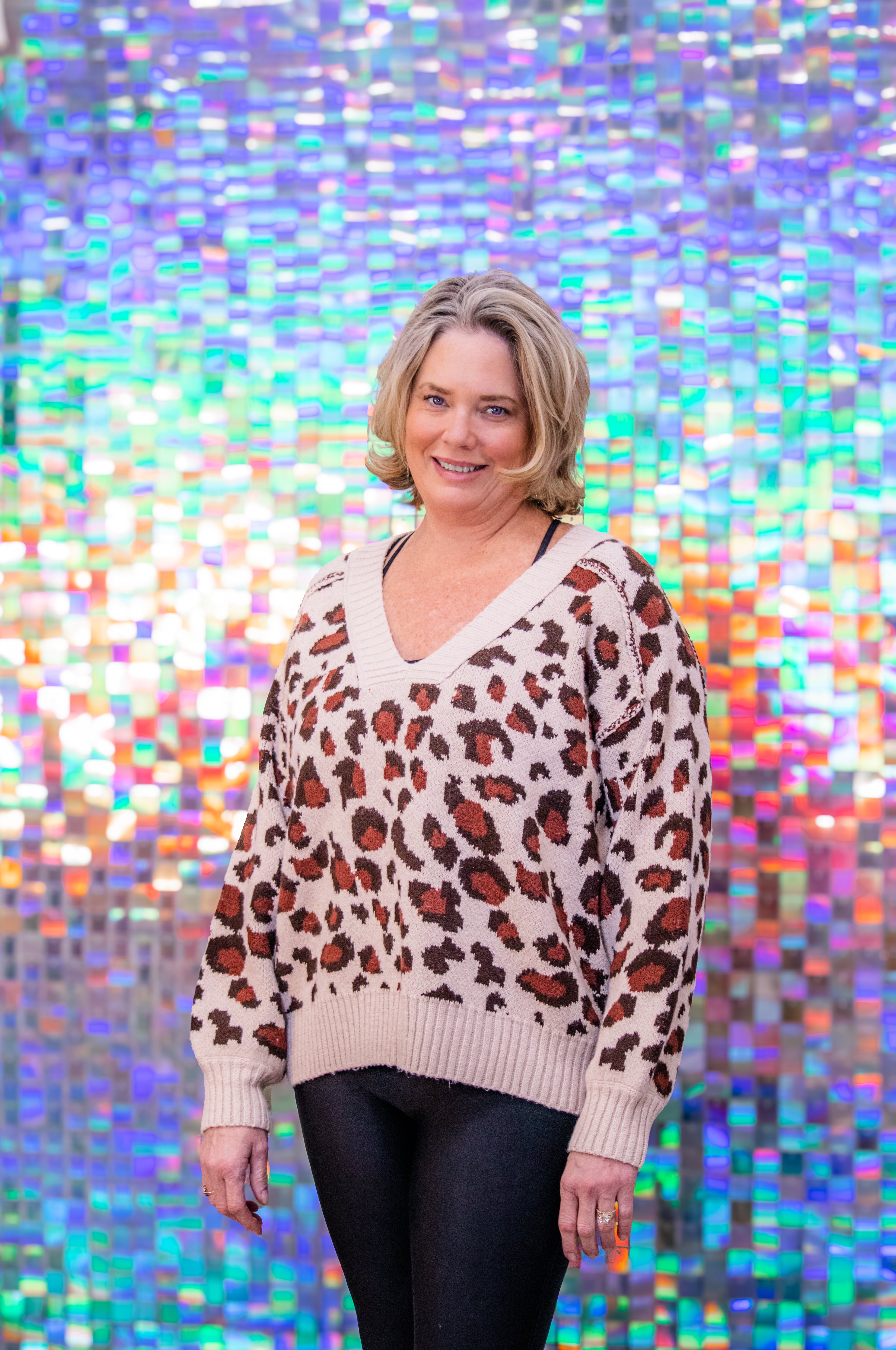 BIBI Leopard Pattern Rib-Banded V-Neck Sweater Top – Wildly stylish and cozy, this BIBI sweater features a bold leopard print with a flattering V-neckline and ribbed banded trim for the perfect fit. Soft and lightweight, it’s ideal for layering or wearing on its own for an effortlessly chic look. Pair with jeans or faux leather for that signature Hawt Mess edge. Ships fast from Alabama!