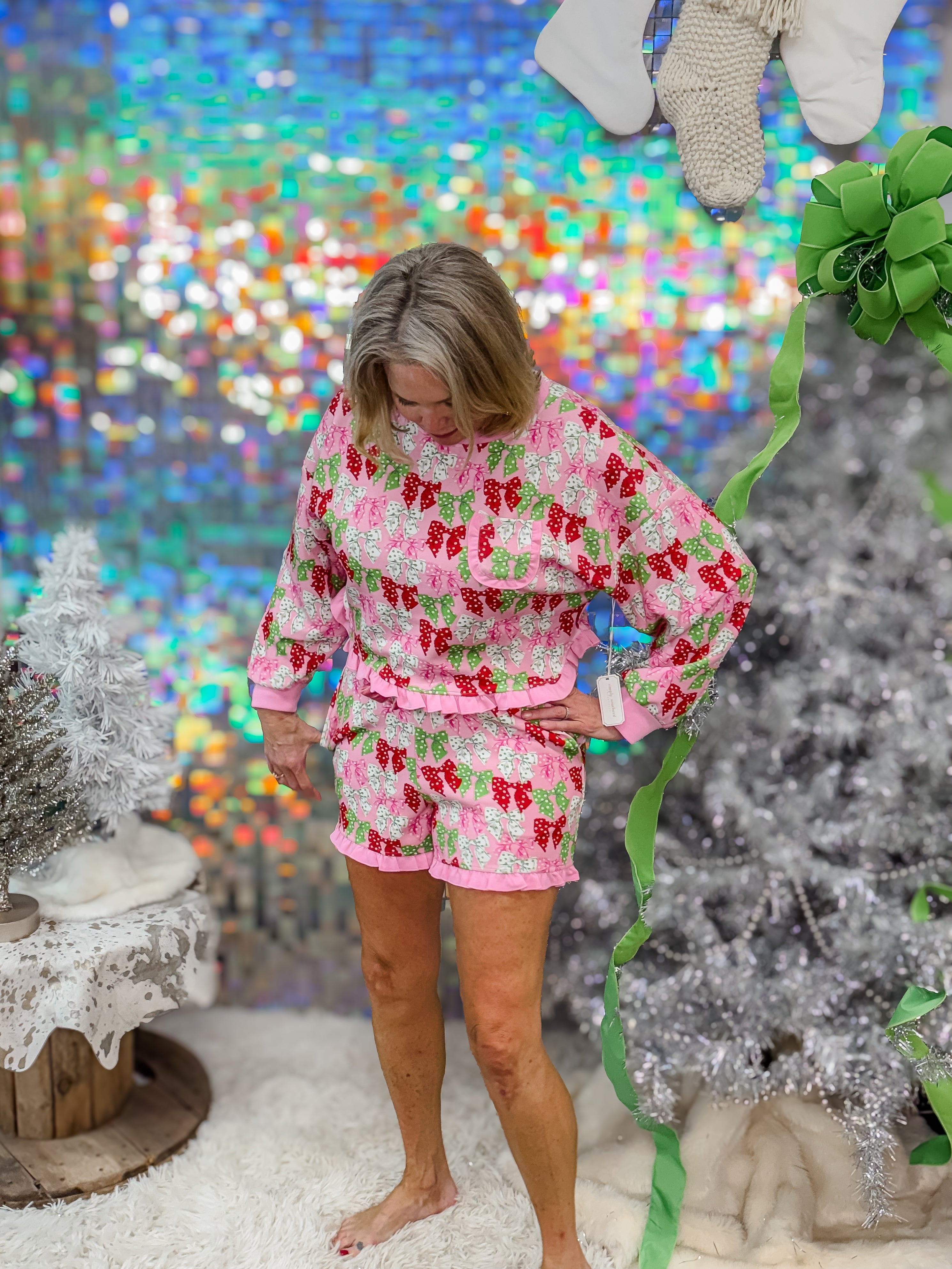 Simply Southern Ruffle Short PJ Set – Christmas Bows & Dots