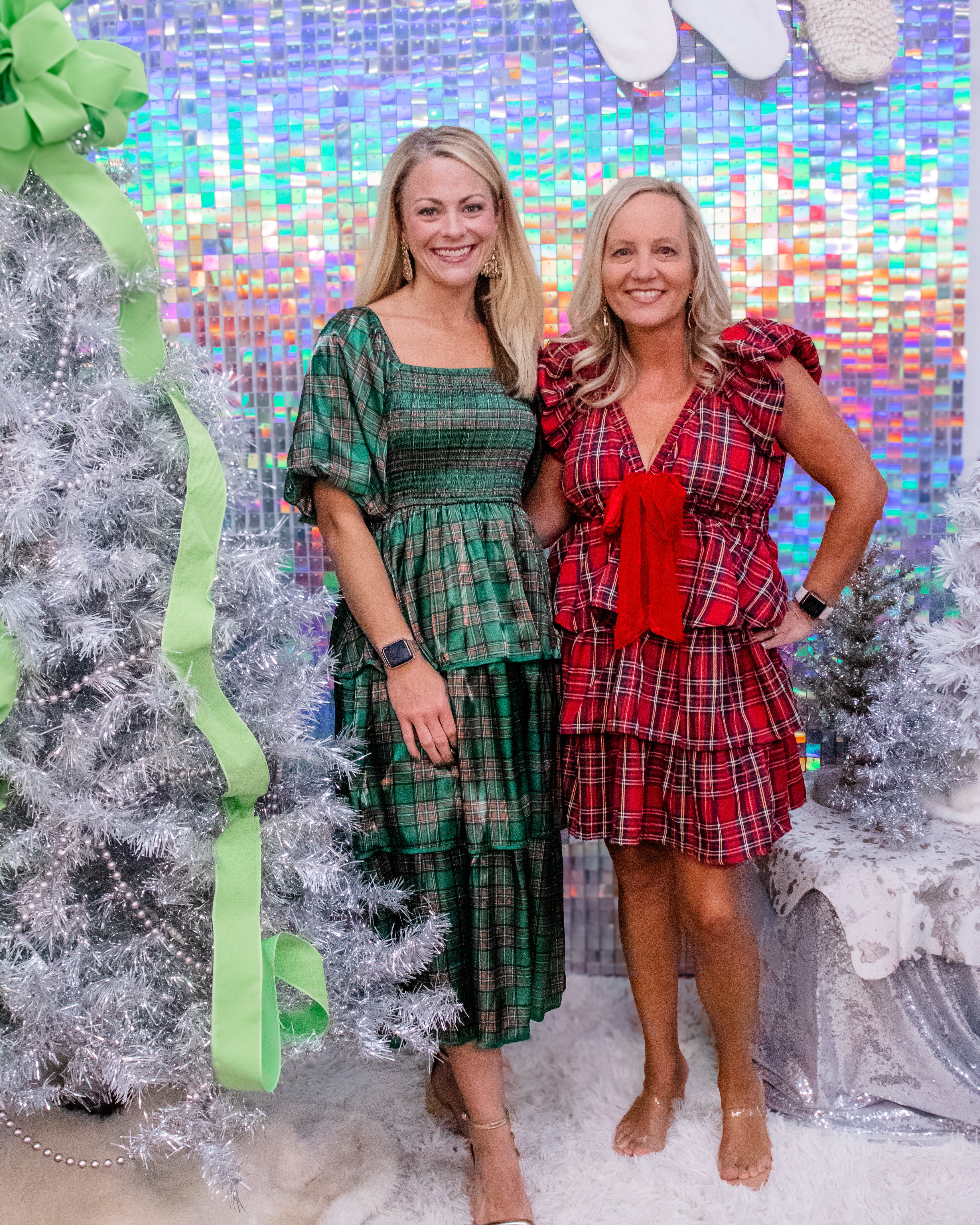A festive mini dress crafted in classic Christmas plaid, designed with a playful tiered silhouette that adds movement and charm. Finished with a soft velvet bow accent for a touch of holiday elegance, this dress is perfect for parties, family gatherings, and festive celebrations. The flattering fit and cheerful print make it a seasonal favorite that’s both stylish and fun.