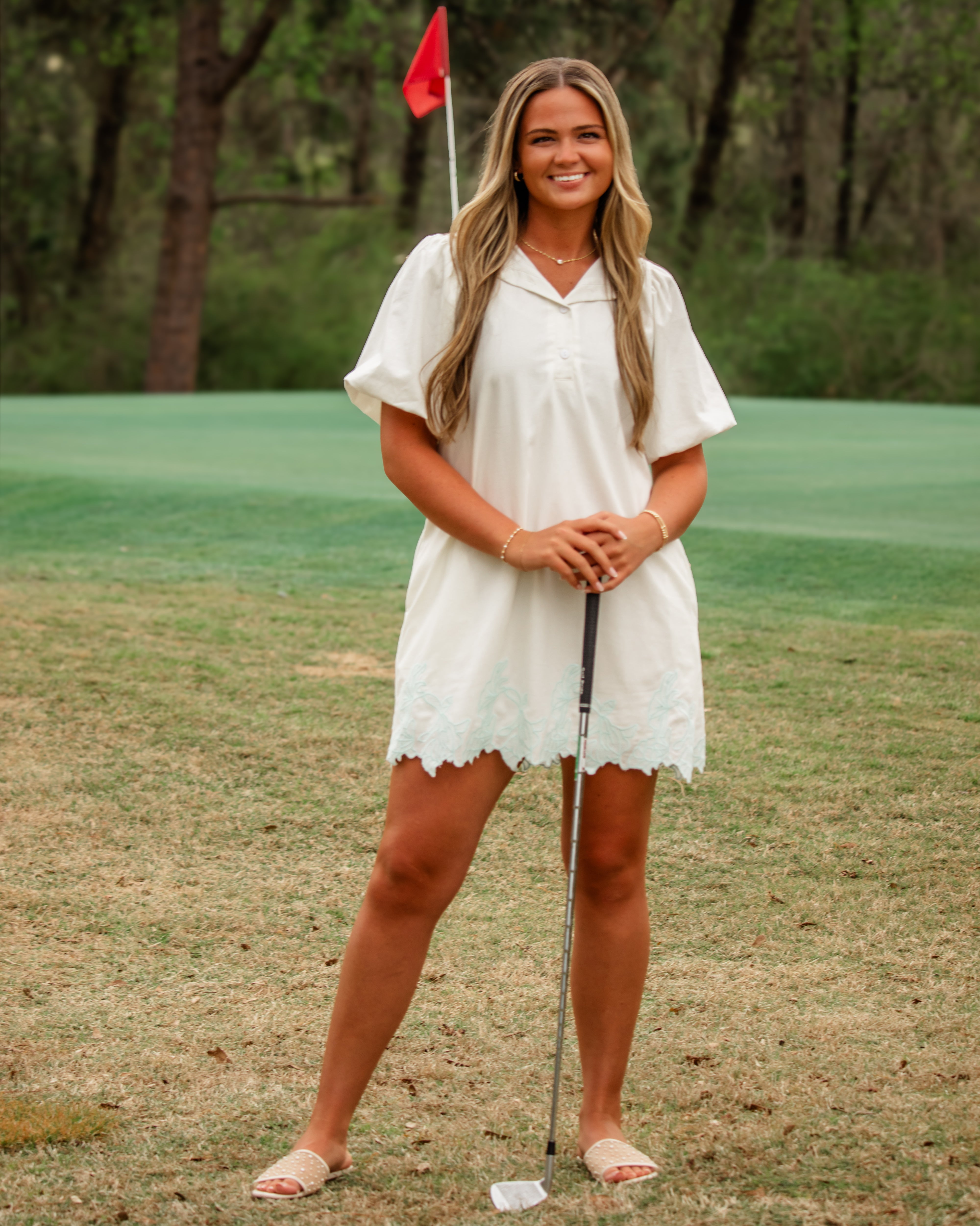This woven mini is full of feminine charm with its ruffled neckline and playful bubble sleeves that add just the right amount of volume. Designed with a flattering, easy fit, it’s lightweight, fully lined, and made for all-day comfort.