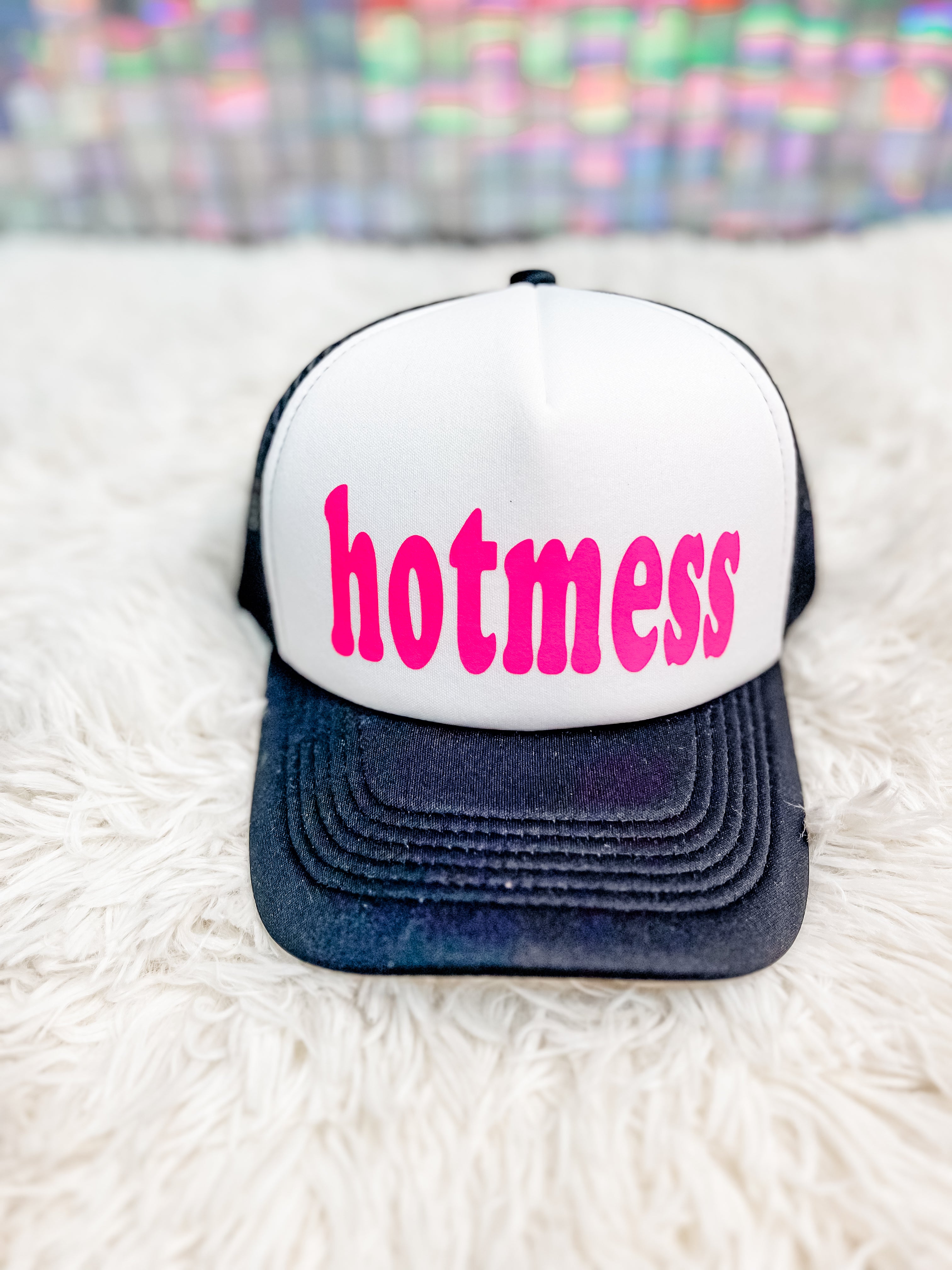 Top off your look with full Hawt Mess attitude 😎 This black trucker hat features bold HOTMESS lettering in vibrant hot pink for a statement that says it all. Designed with a classic mesh-back trucker style and adjustable snapback closure, this hat is comfy, breathable, and made for everyday wear. Perfect for bad hair days, errands, beach days, or repping your Hawt Mess pride wherever you go.