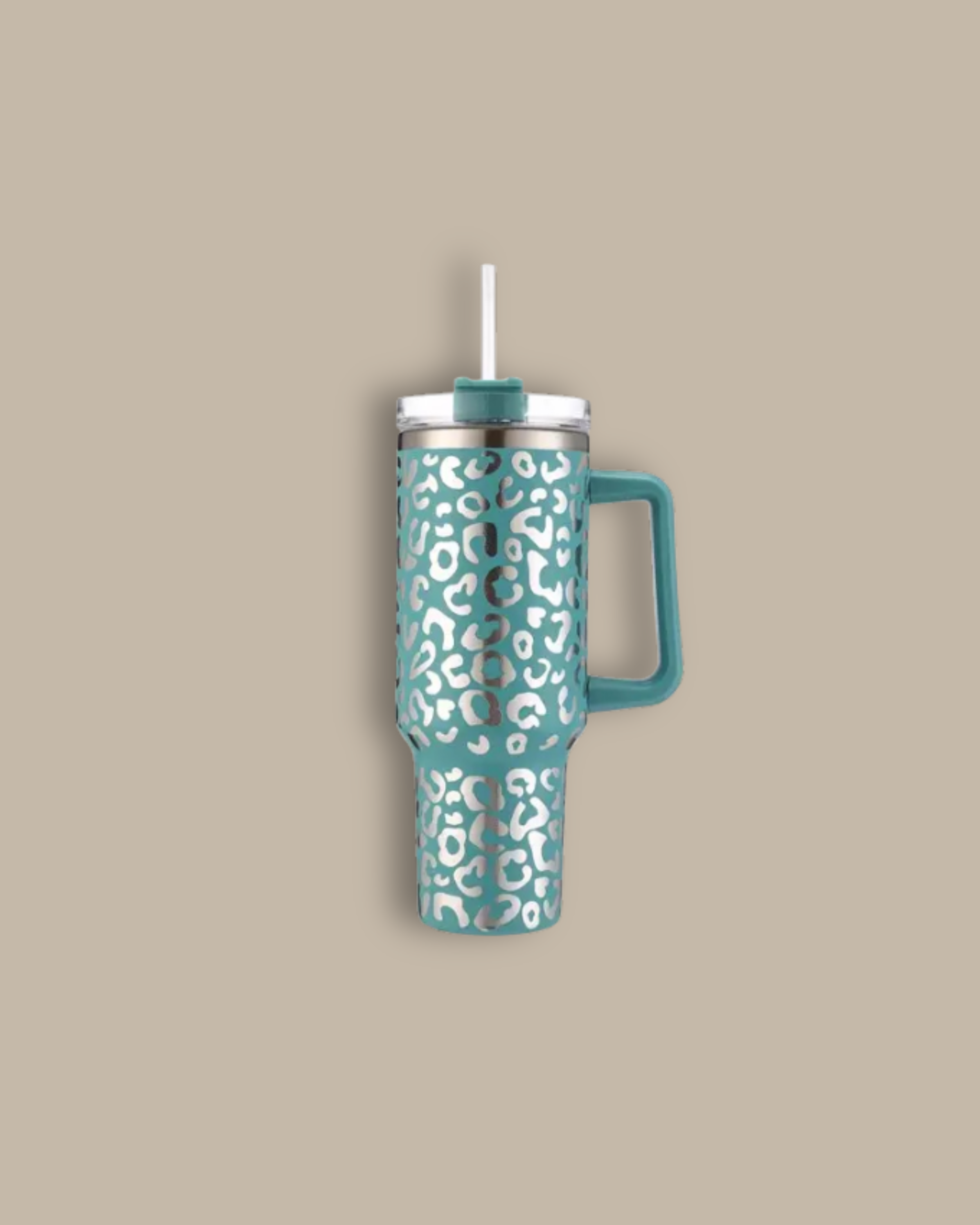 The eye-catching teal leopard pattern makes this tumbler a true statement accessory, while the oversized 40 oz capacity keeps you hydrated from morning coffee runs to afternoon errands and everything in between. Whether youâre sipping water, iced coffee, tea, or your favorite energy drink, this tumbler is made to keep up with your busy, on-the-go lifestyle.