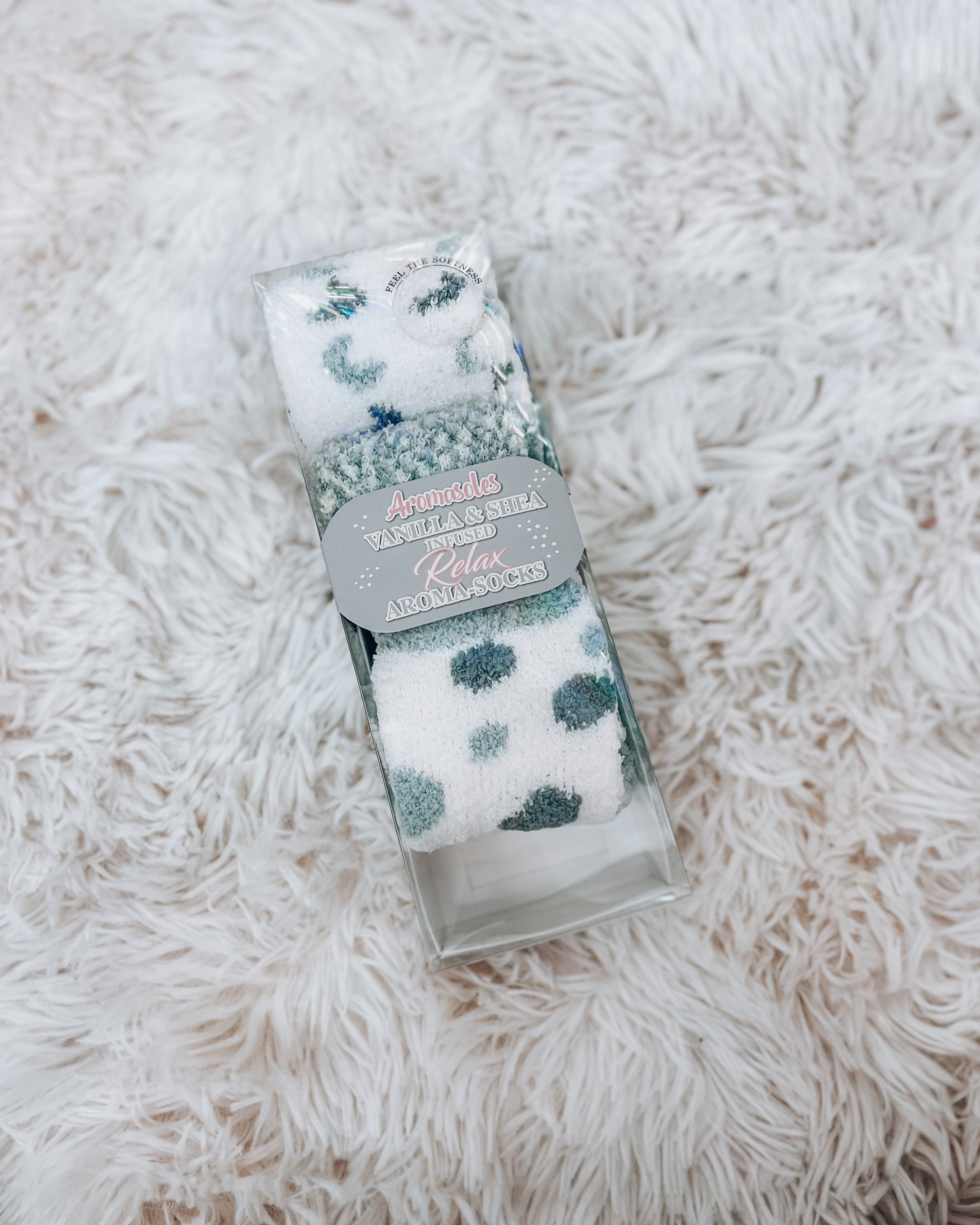 Wrap your feet in softness and soothing fragrance with our Vanilla & Shea Scented Socks 3-Pack. Each pair is infused with a warm vanilla and creamy shea scent that adds a touch of indulgence to your daily routine. Crafted from soft, breathable fabric with a gentle stretch, these socks are as comfortable as they are cozy. Perfect for gifting or treating yourself, this set of three pairs makes every step feel like a little luxury.