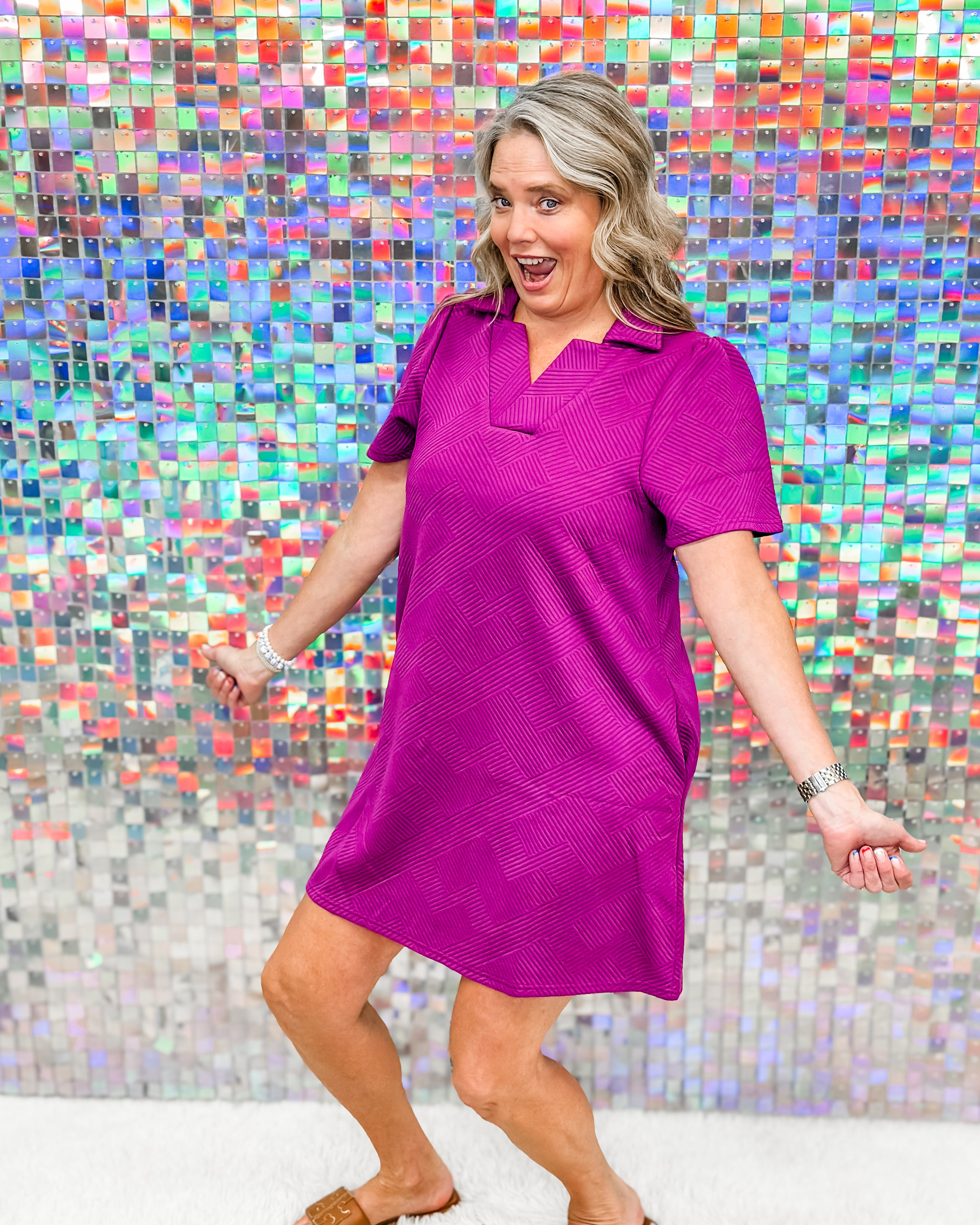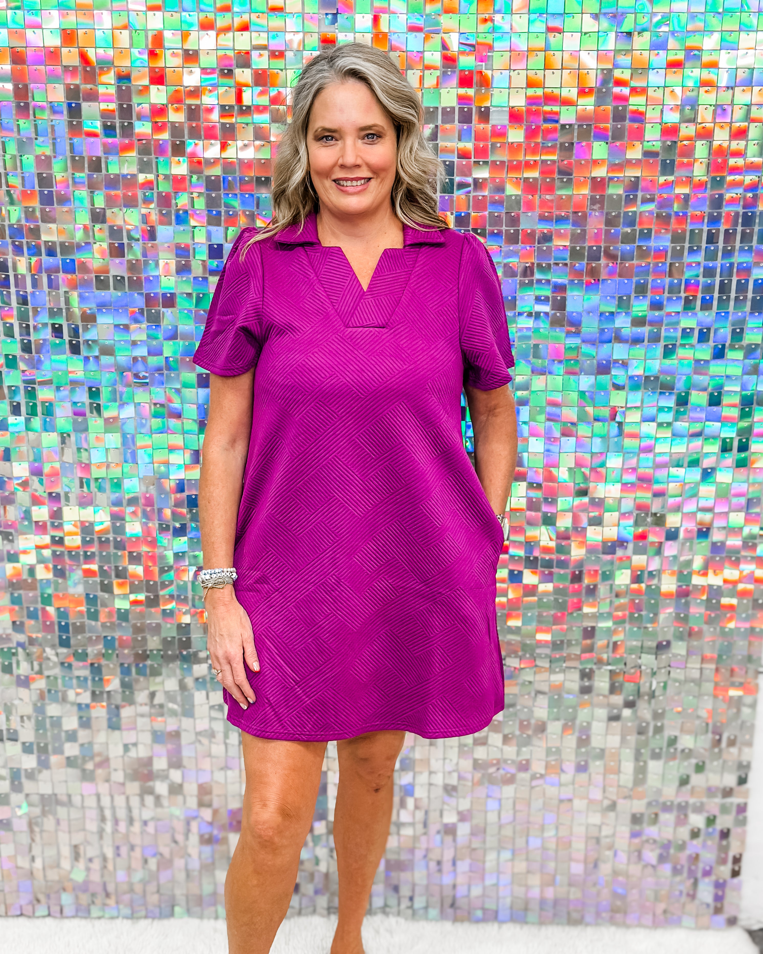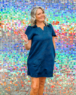 Timeless meets trendy in The Caroline. Featuring a structured collared neckline and rich textured fabric, this dress gives classic charm with a modern twist. Whether you're heading to brunch or the boardroom, the flattering silhouette and subtle detail make it effortlessly chic. Dress it up with heels or keep it cool with sneakers — either way, you're serving style goals.