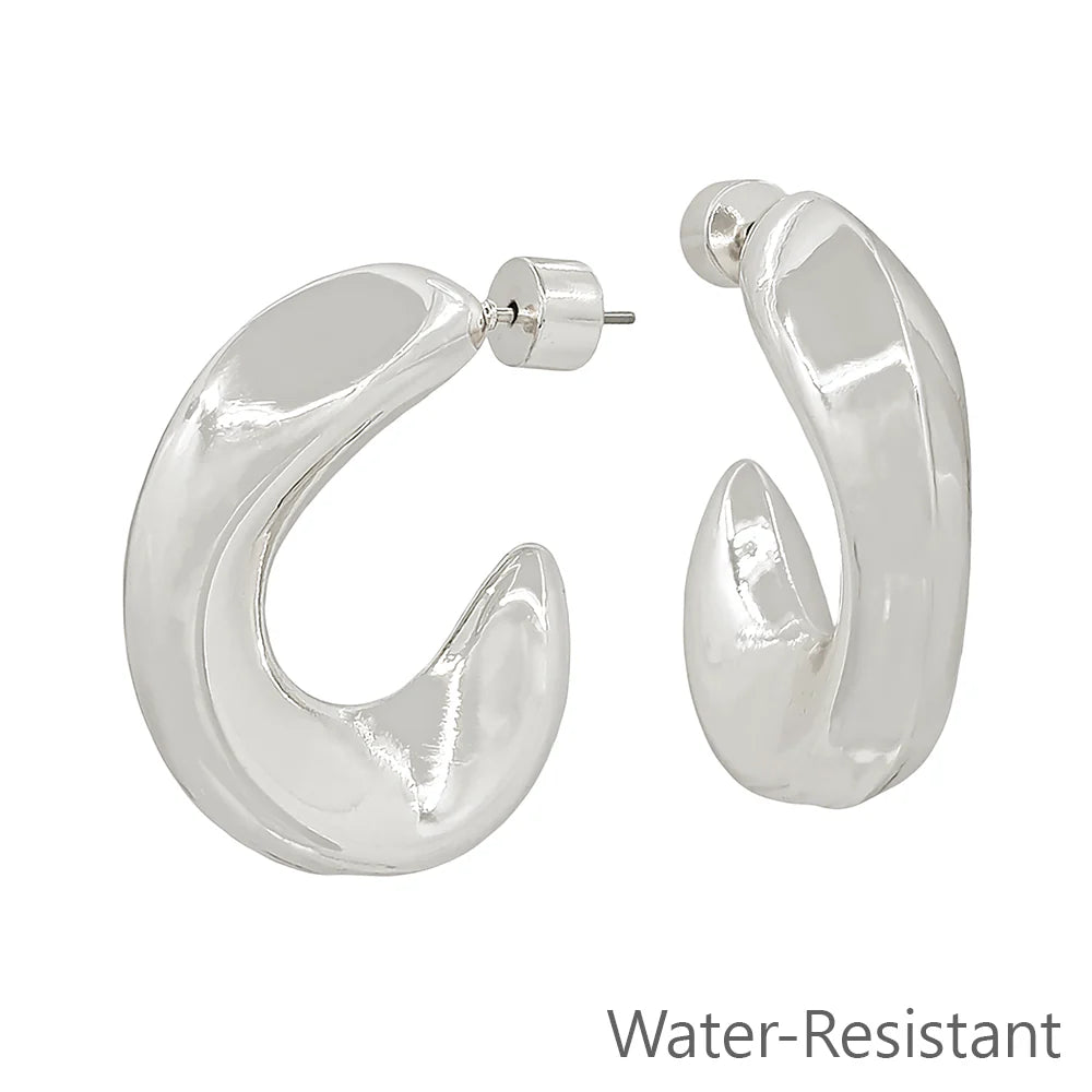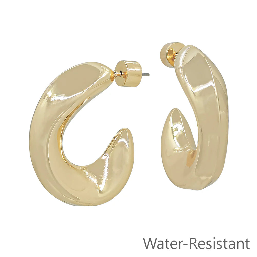 Sleek, sculpted, and ready for anything—our Coastal Curve Earrings bring bold style with a modern twist. These chunky, curved hoops feature a high-shine finish and a lightweight feel you’ll love. Even better? They’re water-resistant, so you can slay by the pool, at brunch, or on the go without missing a beat.