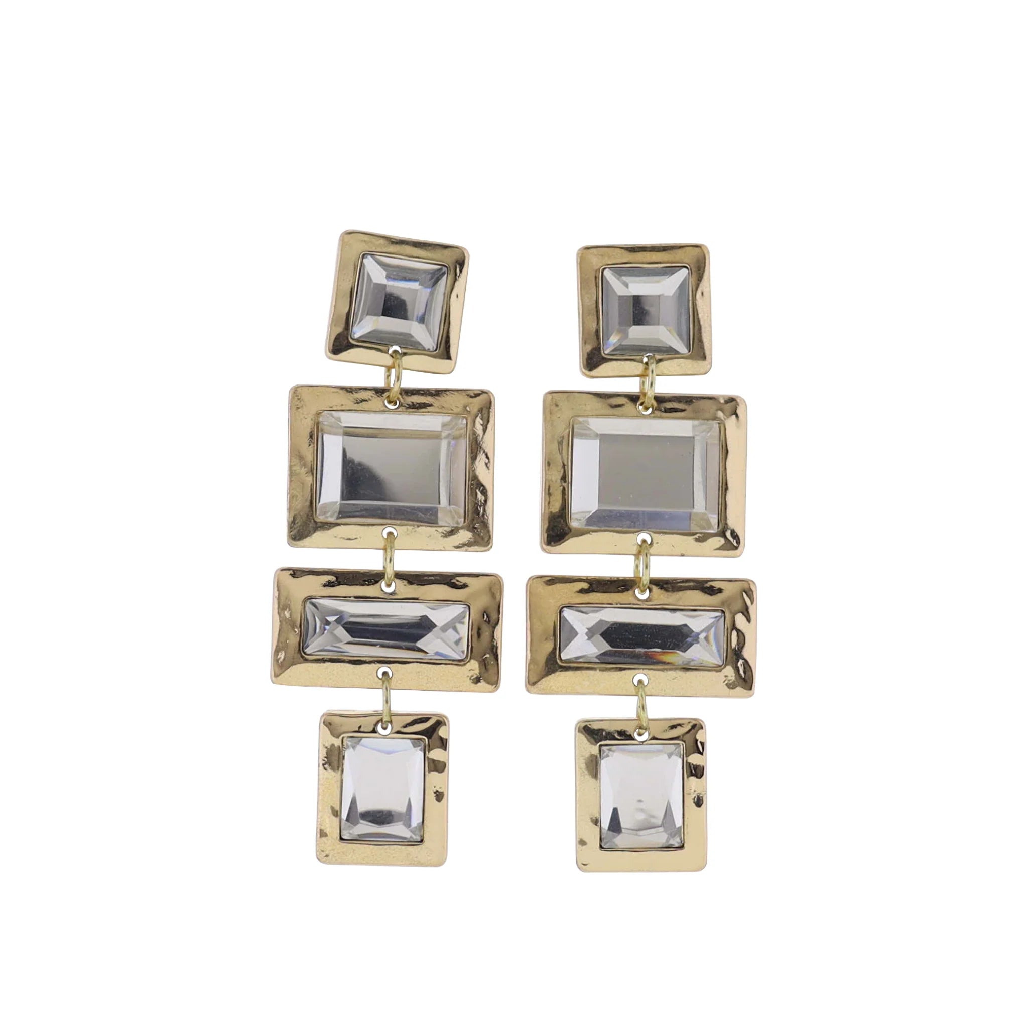 Add instant glam with the Golden Geo Earrings! Featuring a chic stacked geometric design with gold frames and clear gems, these earrings bring all the sparkle. Perfect for holiday parties, weddings, or a night out where you want to shine!