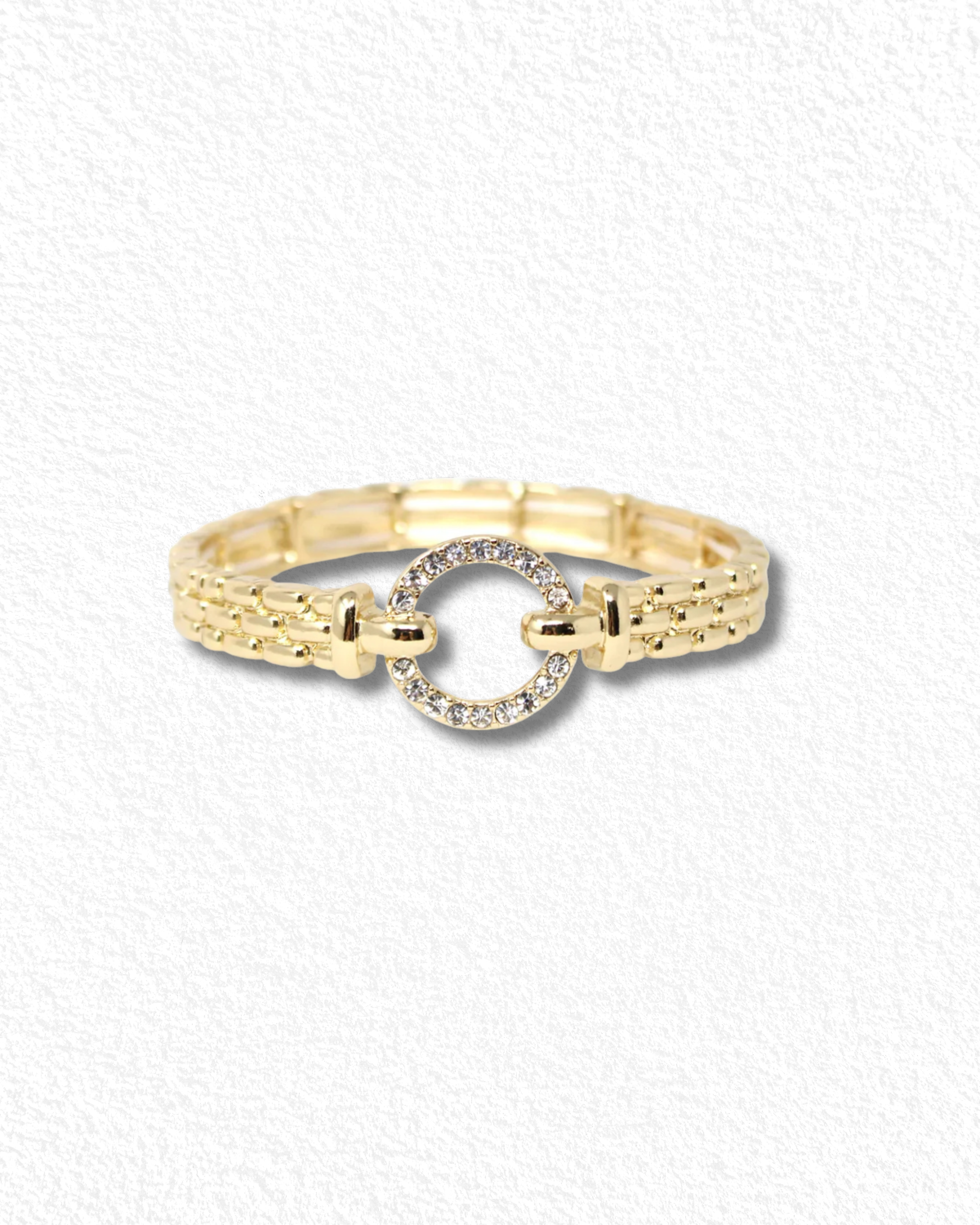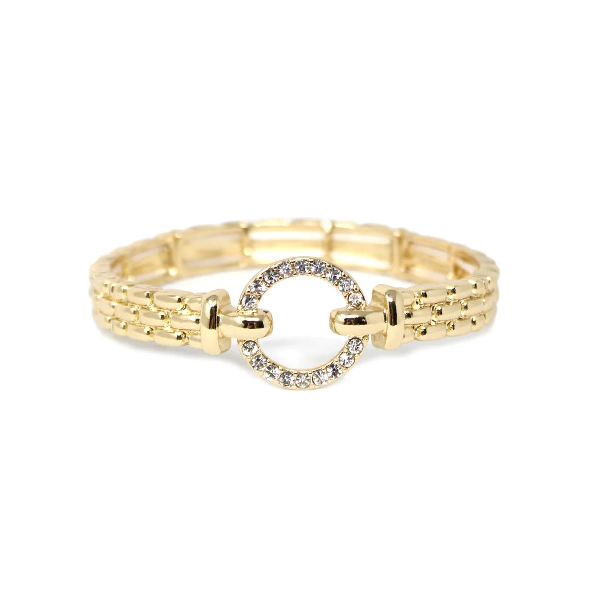 Polished, pretty, and ready to shine—our Golden Hour Glam Bracelet is the perfect blend of timeless elegance and modern sparkle. Featuring a luxe gold-tone stretch band and a crystal-encrusted circle link centerpiece, this bracelet adds a hint of glam without going over the top. The beaded texture and flexible fit make it as comfortable as it is eye-catching.