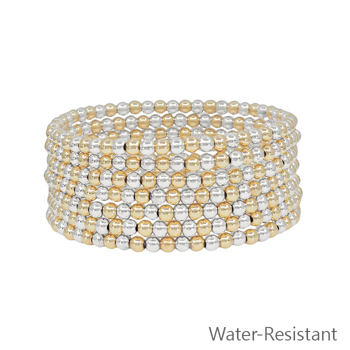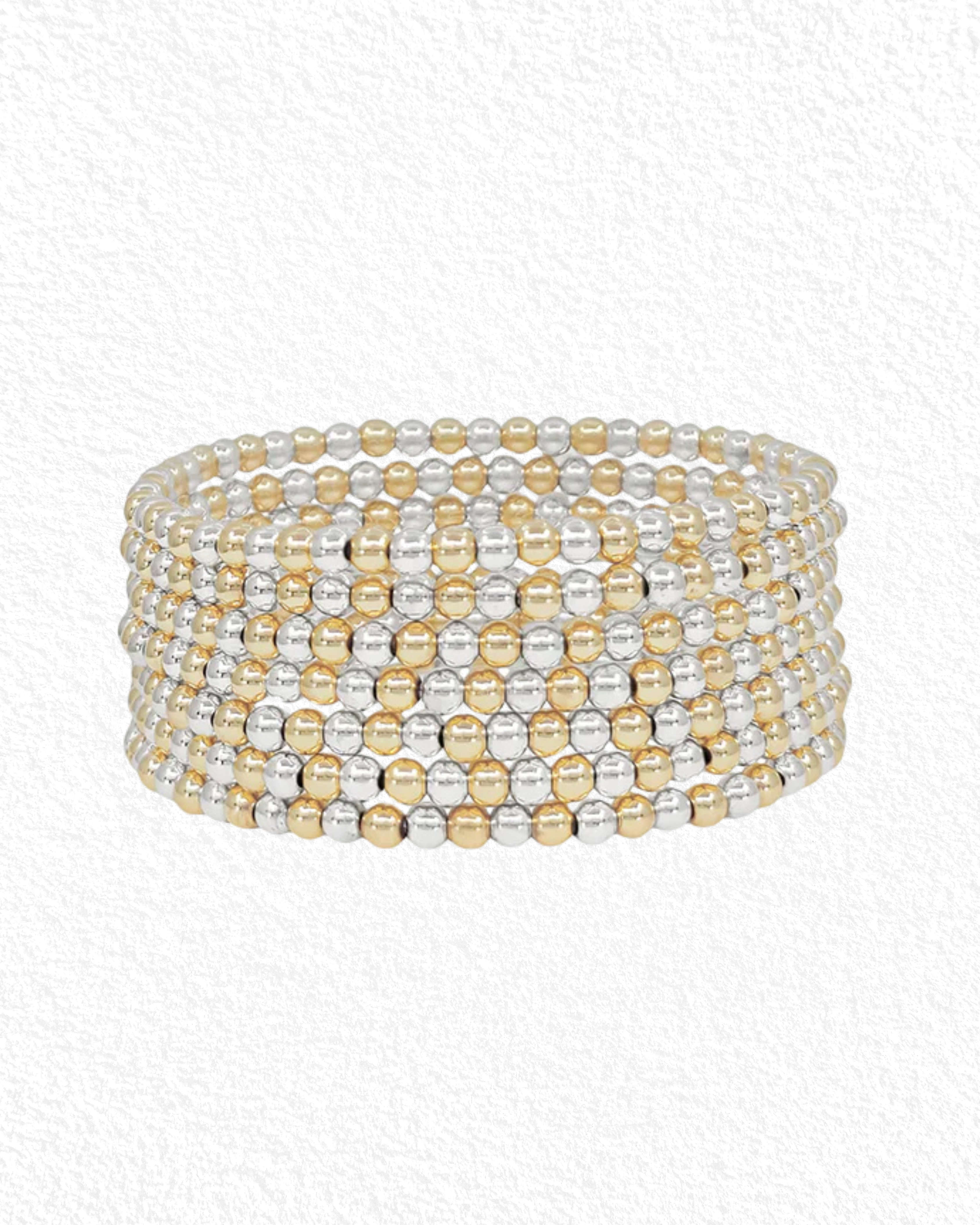 Double the shine, double the style! Our Mixed Metals Magic Bracelet blends silver and gold beading into one bold, stretchy stack—all in a single bracelet.
