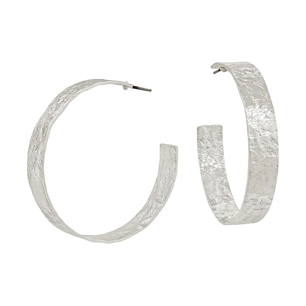 Make a sleek, sculptural statement with our Shimmer Hoops—crafted with a wide, curved design and a richly hammered finish that shimmers with every move. These lightweight beauties add effortless polish whether you’re going casual or full glam.